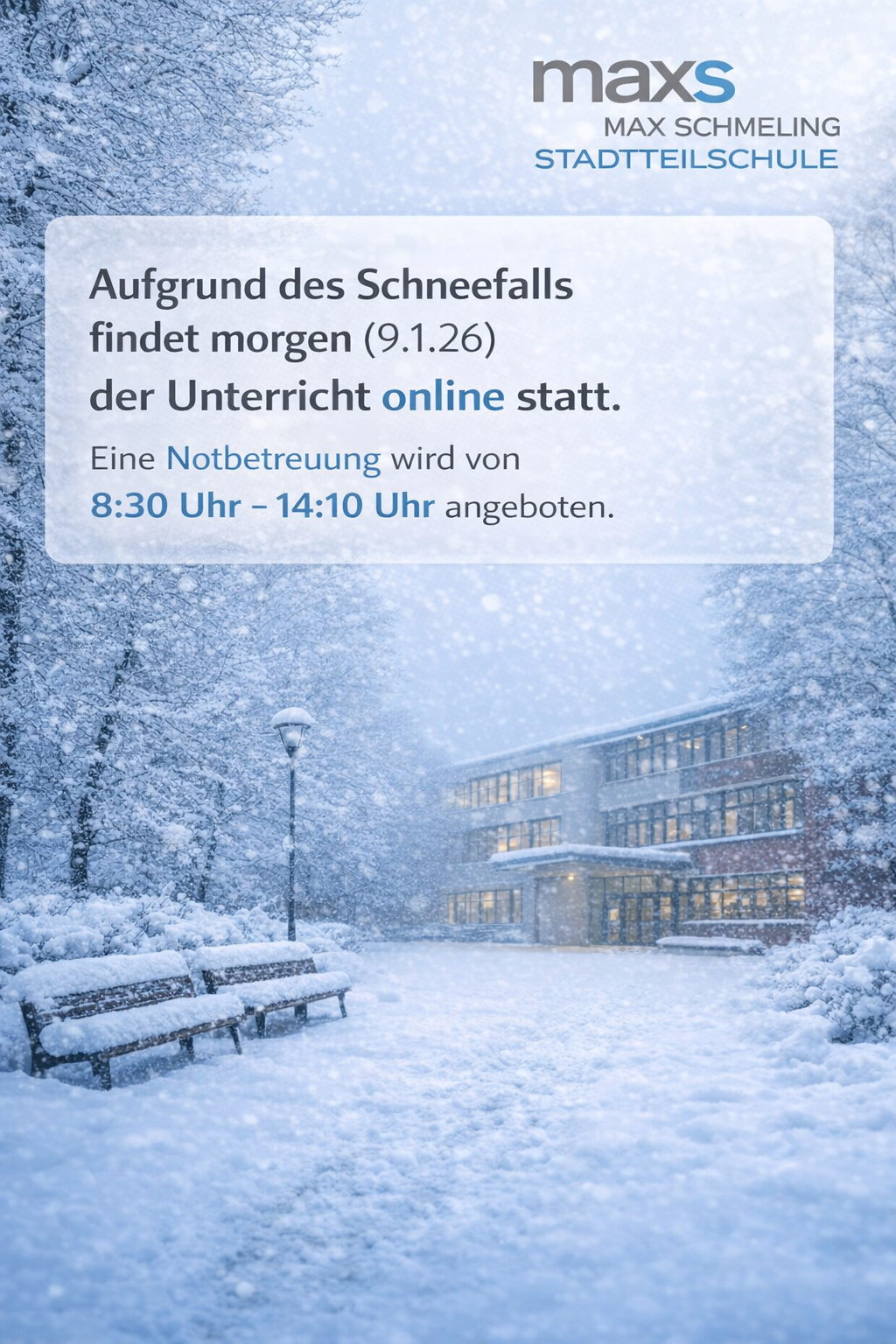 Eine Notbetreuung wird von 8:30 Uhr - 14.10 Uhr angeboten.