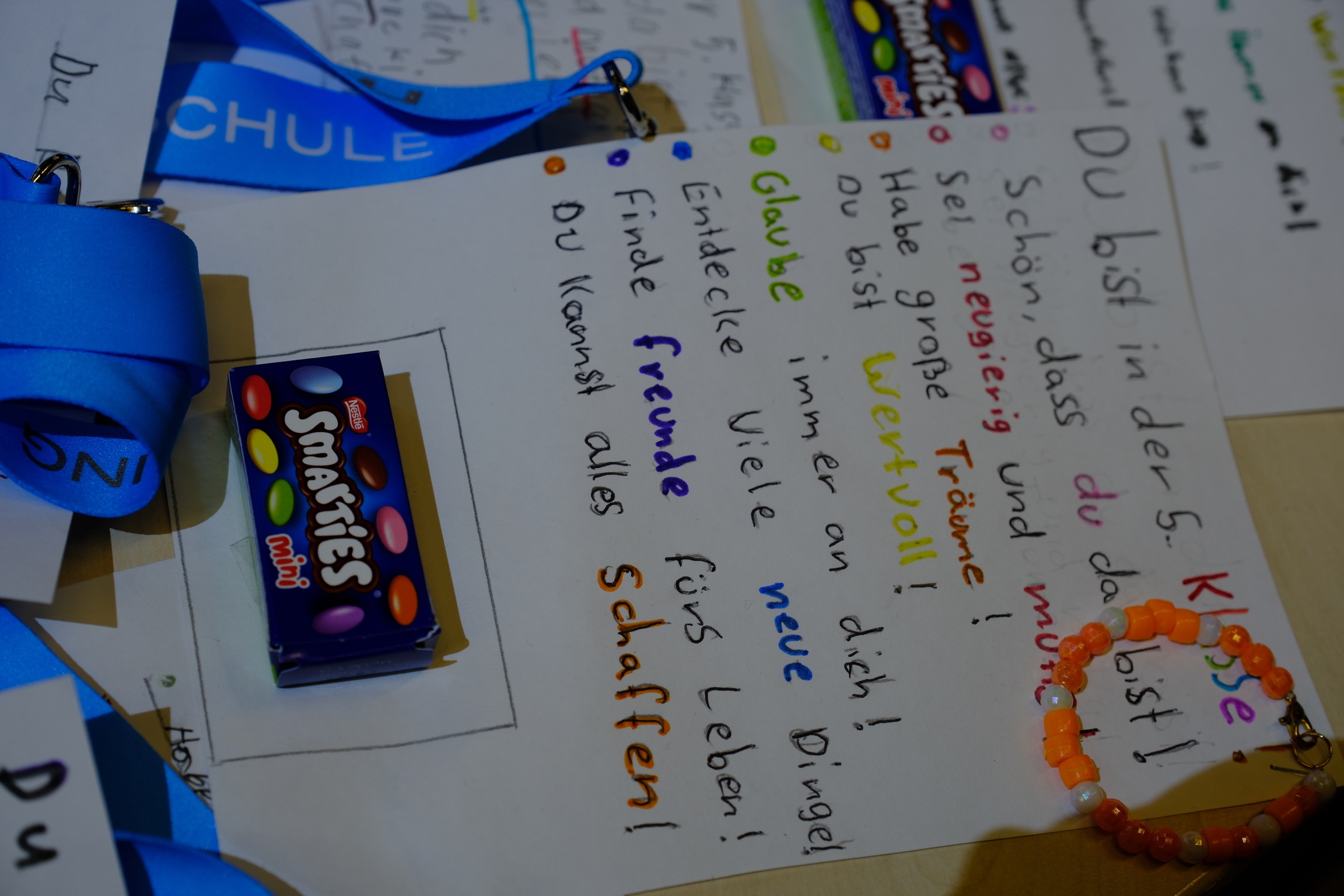 Ein besonderer Höhepunkt war die Übergabe kleiner Willkommensgeschenke: Jede Schülerin und jeder Schüler erhielt eine praktische MaxS-Trinkflasche sowie einen persönlichen Willkommensbrief von den Patenklassen – ein Zeichen dafür, dass niemand den Start alleine meistern muss.